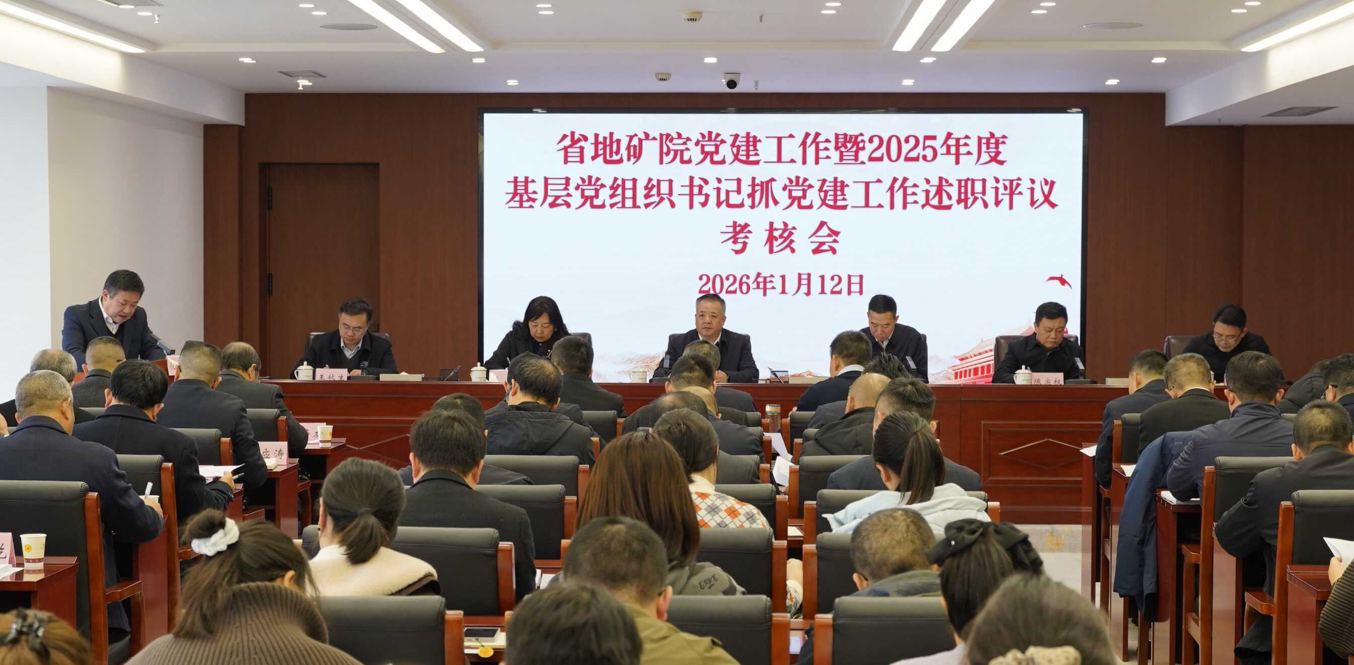 1月12日,省地矿院党委召开党建工作会议暨2025年度基层党组织书记抓党建述职评议考核会,全面总结过去一年党建工作,现场评议党组织书记履职情况,并安排部署“十五五”及2026年党建重点任务。院党委书记王剑出席会议并讲话。
