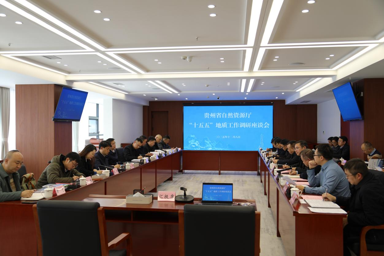 2025年12月8日,贵州省自然资源厅党委书记、厅长周宏文一行到省地矿院,专题调研“十五五”地质找矿工作,并围绕“精准找矿强根基·保障资源谋发展”主题开展座谈交流。省地矿院党委书记、院长王剑主持会议,党委委员、副院长王秋生和宋继伟参加座谈。