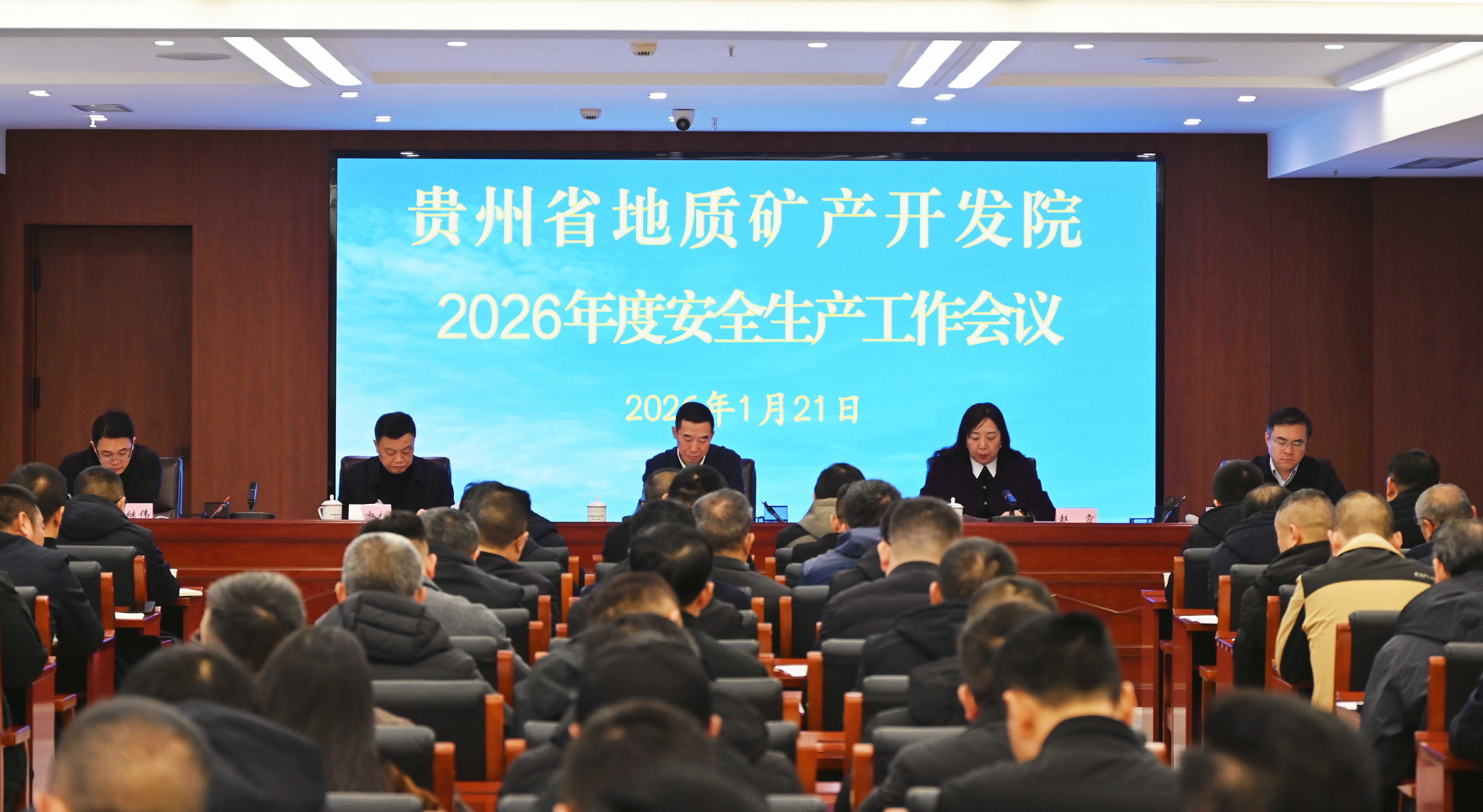 1月21日,省地矿院召开2026年度安全生产工作会,深入学习习近平总书记关于安全生产的重要指示精神,全面总结2025年工作,分析当前安全形势,对2026年重点任务进行部署。院领导班子成员、各单位主要负责人及安全部门负责人等100余人参会。会议由院党委委员、副院长赵霞主持。院党委副书记冉友敏讲话。
