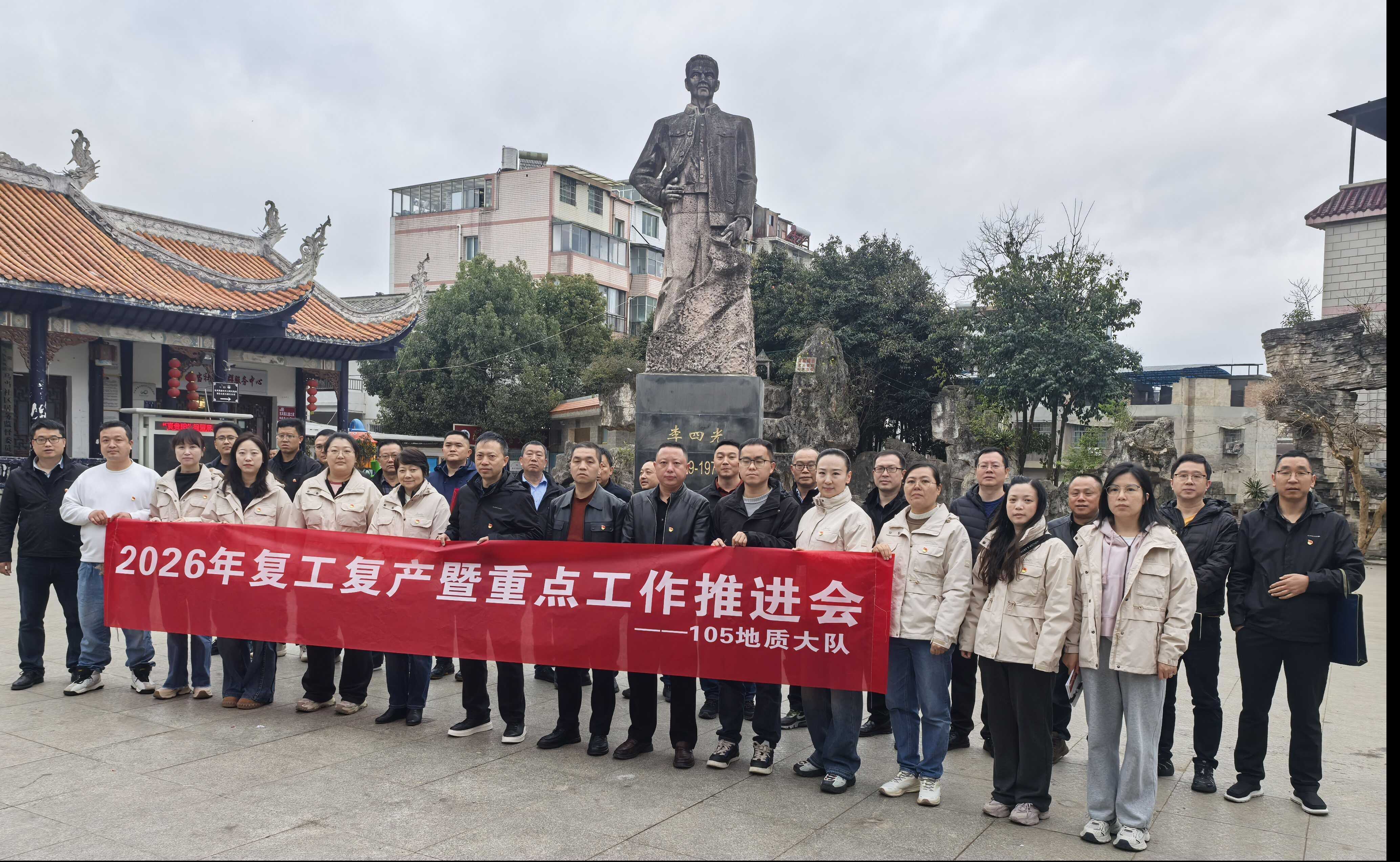 2月25日,105地质大队在贵阳市乌当区东风镇李四光广场“四光亭”召开“新春第一会”。会前,全体人员瞻仰李四光先生雕像,重温地质报国初心。队党委负责人赵平以“弘扬李四光和开发矿业精神,向新、向绿推动高质量发展”为题讲授新年思政第一课,号召干部职工围绕深入贯彻落实国家新一轮找矿突破战略行动和省委、省政府“富矿精开”总体部署,凝心聚力、奋楫笃行。会后,全体人员重温入党誓词,凝聚奋进力量。