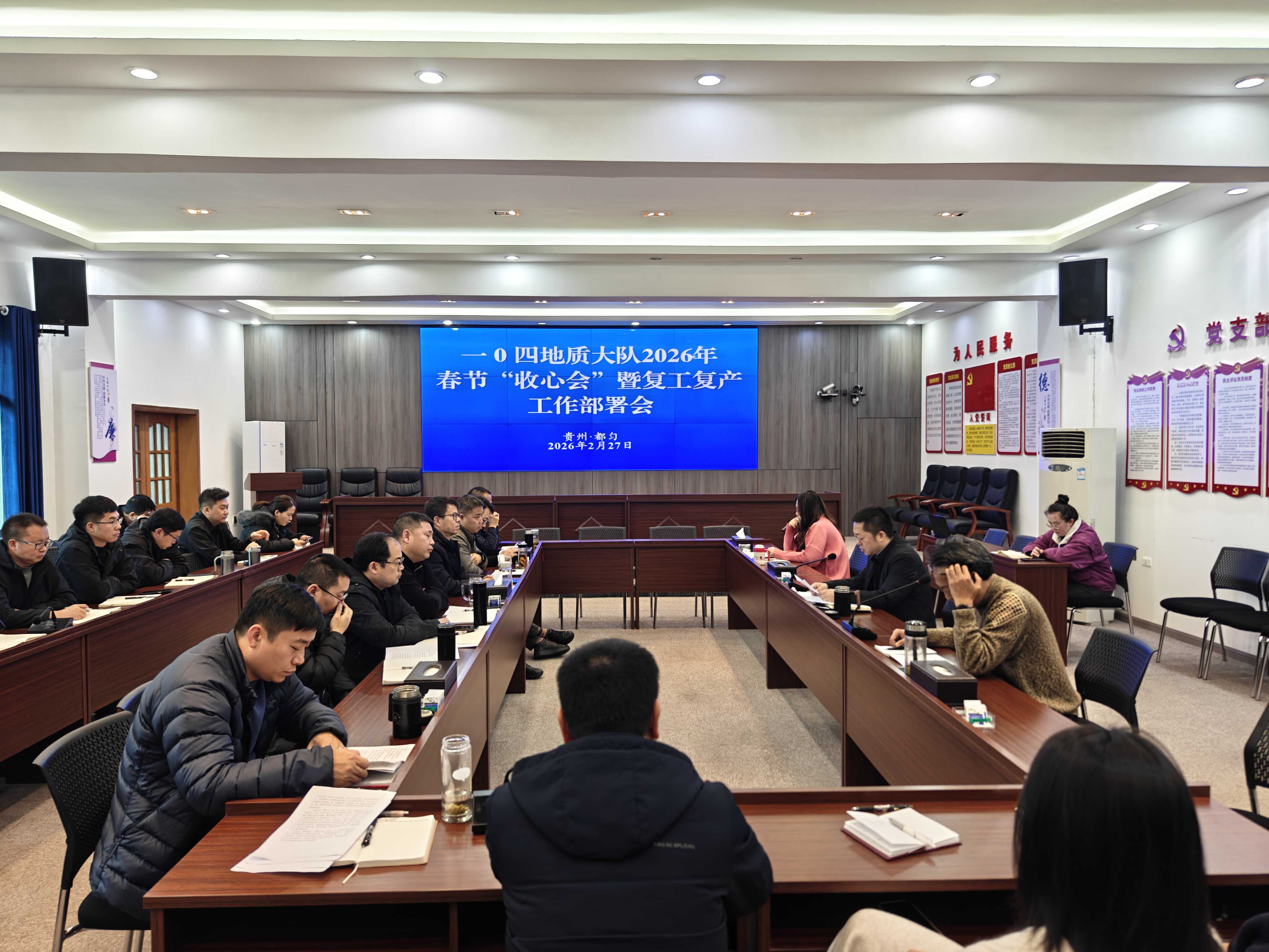 2月27日,104地质大队召开复工复产工作部署会,党委成员、部门正副职参会。各部门汇报年度工作思路和项目储备情况,会议明确围绕地质勘查、矿业开发、矿权盘活、广义地质“四大领域”精准发力、协同推进,坚持项目为王,强化专班推进、闭环管理、动态调度,确保年度重点工作高效落地。截至2月底,104地质大队新签合同金额近4000万元,完成收入1800万元,实现“开门红”阶段性目标。