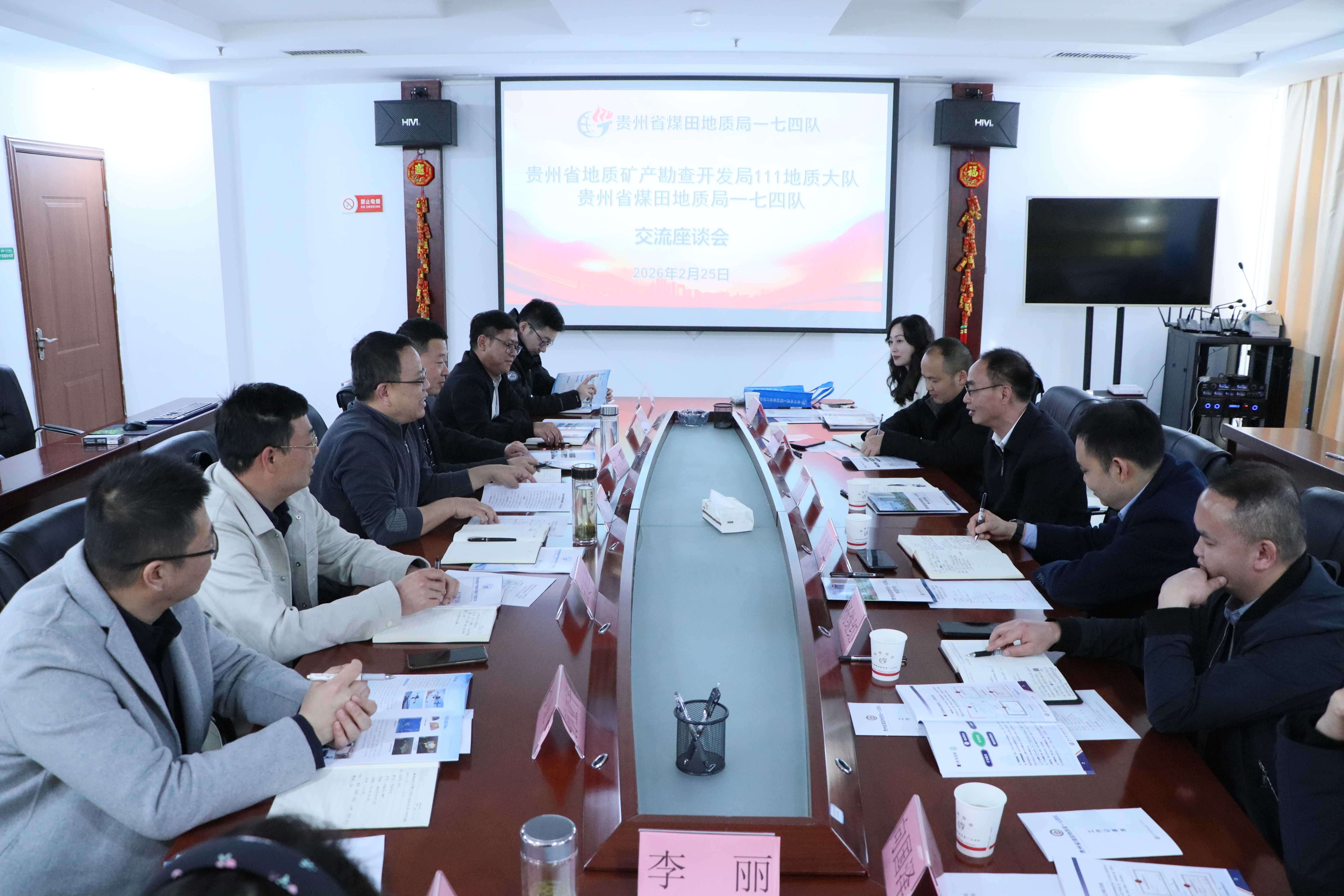 2月25日,111地质大队与一七四队开展交流座谈。双方分别介绍了发展历程、业务布局、技术优势及人才队伍建设情况,围绕地质勘查、项目管理、环境治理、物探技术等领域深入交流。双方一致认为,彼此业务高度契合、互补性强,希望建立常态化交流机制,深化多领域合作,实现优势互补、互利共赢,共同为贵州地质事业高质量发展贡献力量。